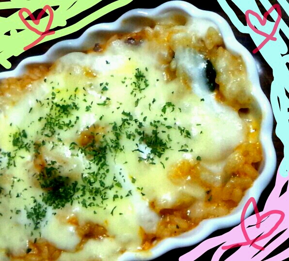 フライパンで米炊いて混ぜてチーズのせてレンジかけただけだけどなo(^o^)o